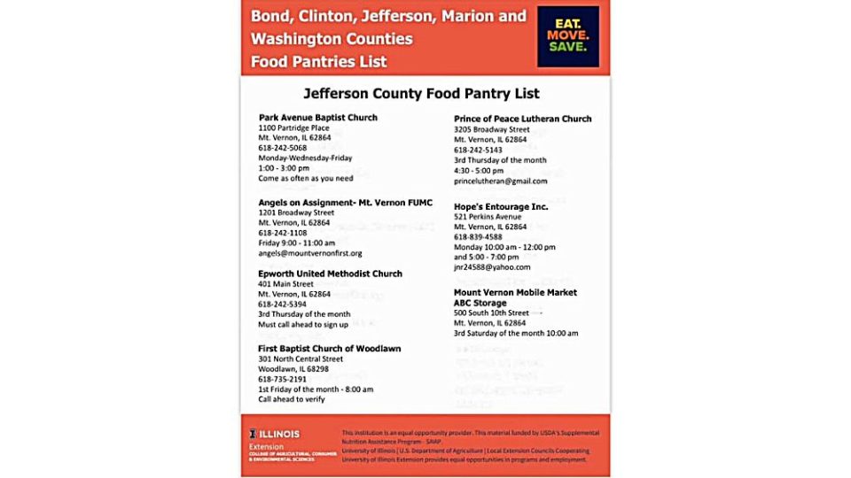 In addition, the United Way of South Central Illinois has a Little Free Food Pantry located at 716 Main St. in Mt. Vernon that’s available anytime for anyone in need.